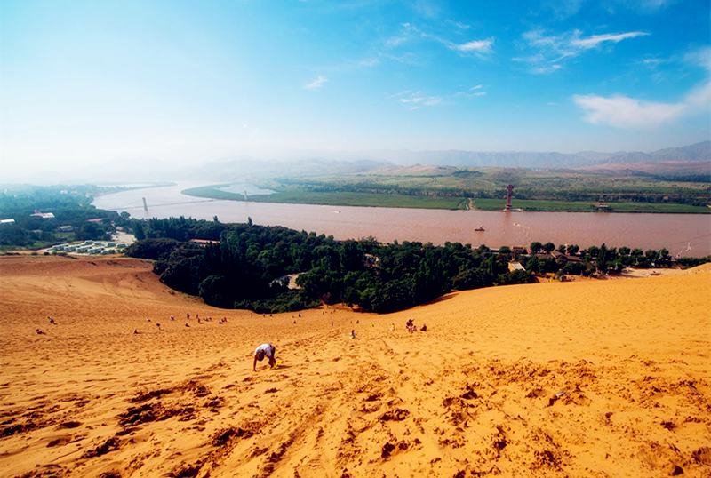 来到一片果园,小杨兴奋地指着树上的红枣和苹果说:“这是我们宁夏的特产,味道绝对一流!”他们三人迫不及待地爬上树,品尝着鲜甜的果实,脸上洋溢着满足和幸福的笑容。